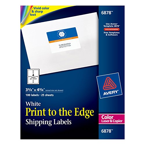 Avery Print-to-the-Edge Shipping Labels for Color Laser Printers and Copiers, 3.75 x 4.75 Inch, Pack of 100 (6878)
