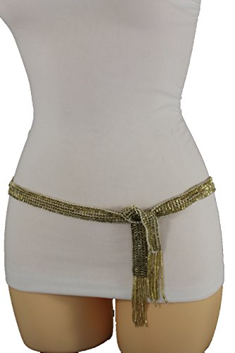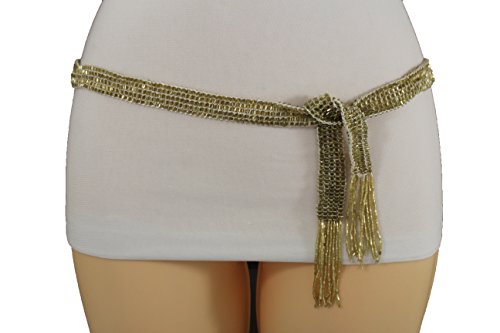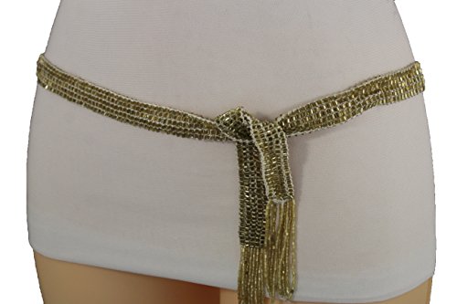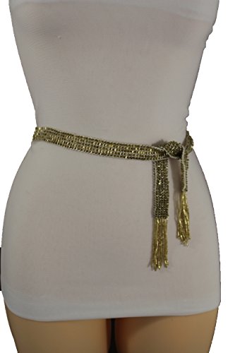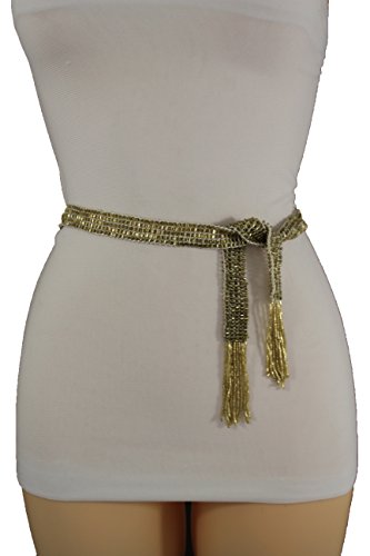 Binding : Apparel Product Description New unique dressy beads buckle fashion belt Sexy trendy going out, clubbing wedding bridal and everyday fashion collection Style : Fashion - hip / high waist Condition : Brand New Color : White fabric and shiny gold beads Size: One Size Belt Adjustable Can Fit Size Small - Large Waist Size: 28"- 40" total length -60" Belt Width: Up to 5/6" 0