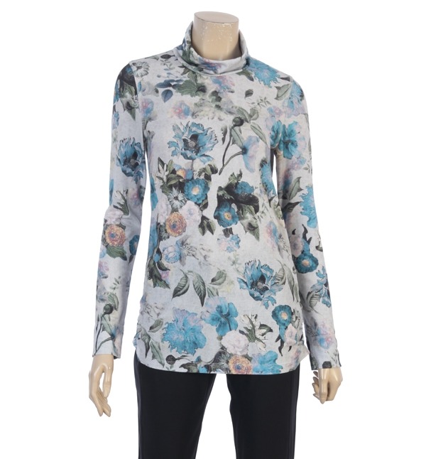 JOHANEX, 러블리한 감성을 연출하는 플라워 프린팅이 전체적으로 들어가있어 여성스러운 티셔츠 입니다