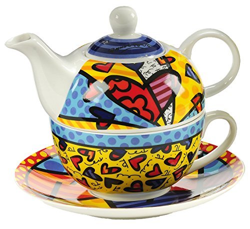 -. Title : New Bone China, Tea for One Set by Romero Britto - Gift Boxed, A New Day Design
