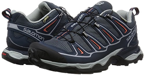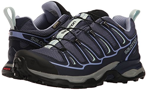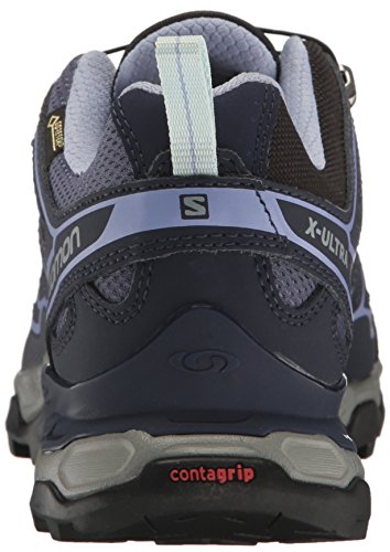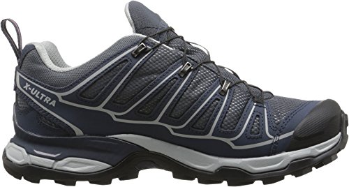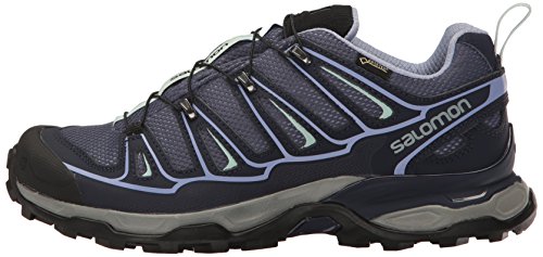 Studio : Salomon Publisher : Salomon Binding : Apparel Product Description The Salomon X Ultra GTX Trail Walking Shoe boasts a swathe of technologies that make it a comfortable all-round performer, including a fully waterproof GORE-TEX® lining that keeps the foot dry, temperate and free from blisters. A superb multi-day adventure hiking boot that combines trail running technology with an excellent fit and durable stability, ideal for dedicated hikers. This technical trail shoe utilises a mud guard and gusseted tongue to prevent loose debris and detritus from infiltrating the upper, whilst a stability chassis delivers additional protection, ideal for fast hiking on mixed terrain. 0