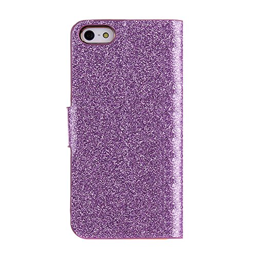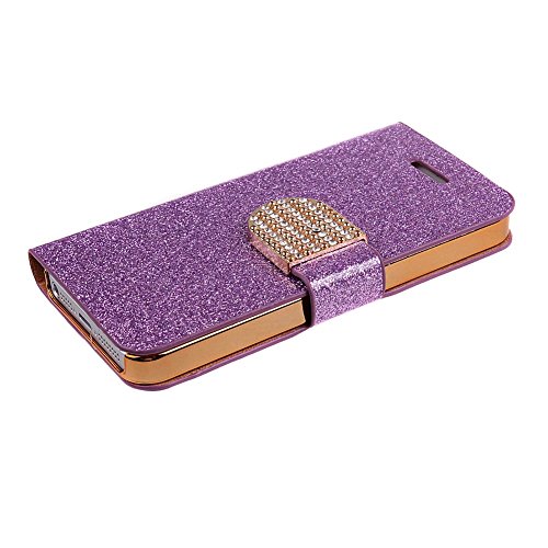 iPhone SE Case,iPhone 5S Case,iPhone 5 Case,ikasus Bling Glitter Sparkle Crystal Rhinestone PU Leather Wallet Flip Case Stand Cover Case for Apple iPhone SE 2016 & iPhone 5S 5 (Glitter:Purple)