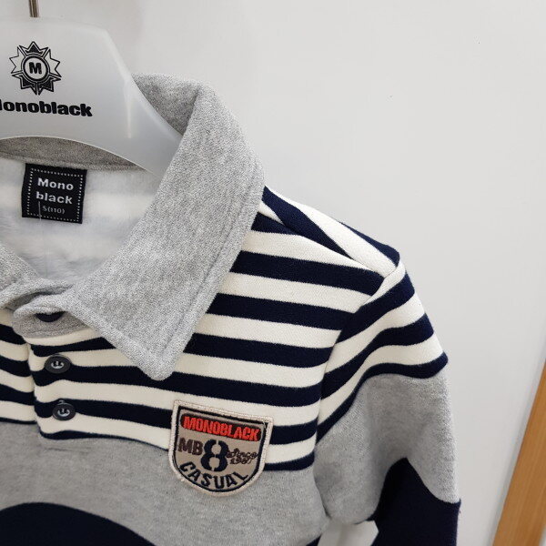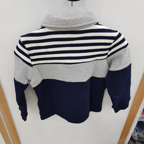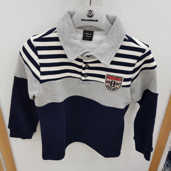 네이비색상의3단절개S/T배색카라티셔츠입니다.