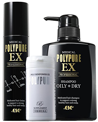 -. Feature : 【累計400万本】モンドセレクション6年連続<金賞>受賞 / 育毛剤、薬用シャンプー、サプリメントのお得なセット / ポリピュアEX 120mL/薬用育毛剤 / ポリピュアEX スカルプシャンプー 350mL/薬用シャンプー(コンディショナー不要、ノンシリコン) / ポリリンパワーEX 150粒/健康補助食品(亜鉛、ノコギリヤシなど厳選19成分)