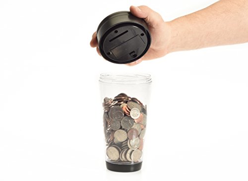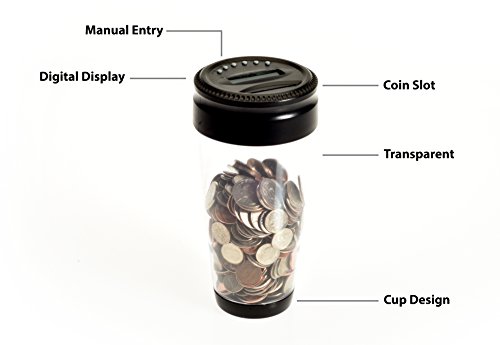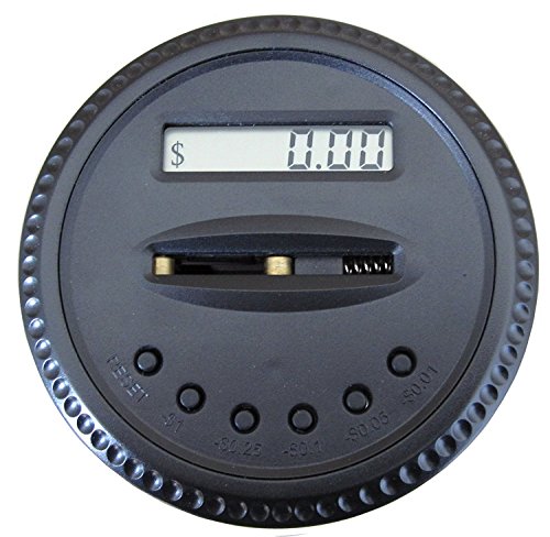 Digital LCD Display automatically keeps track of savings; Easy Twist-Off Lid for coin retrieval - when coins are removed. There are simple deduct buttons (on the lid) which allows for withdrawals in any, maintaining an accurate balance of savings.