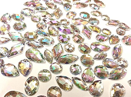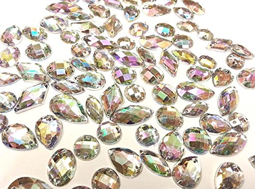 CraftbuddyUS 80 Ab Clear Faceted Acrylic Sew On, Stick on Diamante Crystal Rhinestone Gems