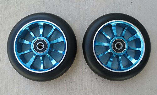 (DropIn Scooters)/Scooters/Parts Accessories/DIRECT FROM USA/DIS 110mm 10-Spoke Black on Blue Metal Core Scooter Wheels (Pair - 2 wheels) with Bearings and ...