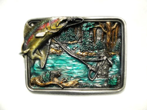 -. Title : "TROUT FISHING AT ITS FINEST" PEWTER BELT BUCKLE BY BERGAMONT