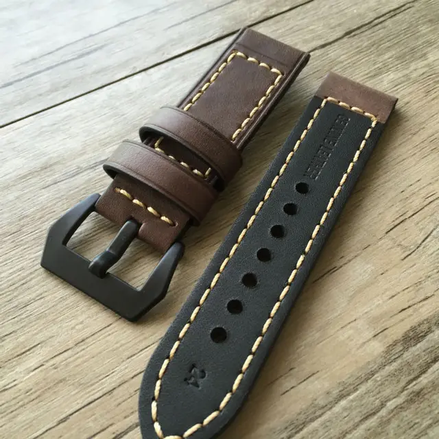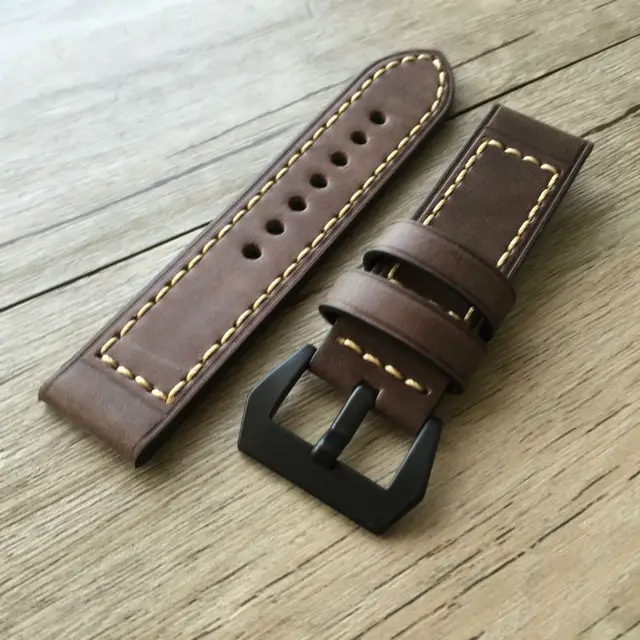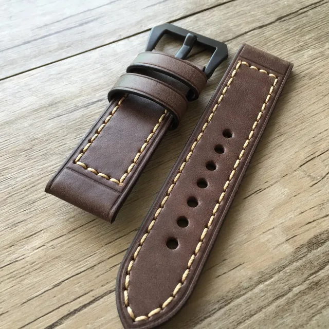 | [해외]부드러운 가죽 스트랩 파네 라이 다크 브라운 20 미리메터 22 미리메터 24 미리메터 레트로 가죽 시계 줄 버전, 클래식 남성 시계 줄 |