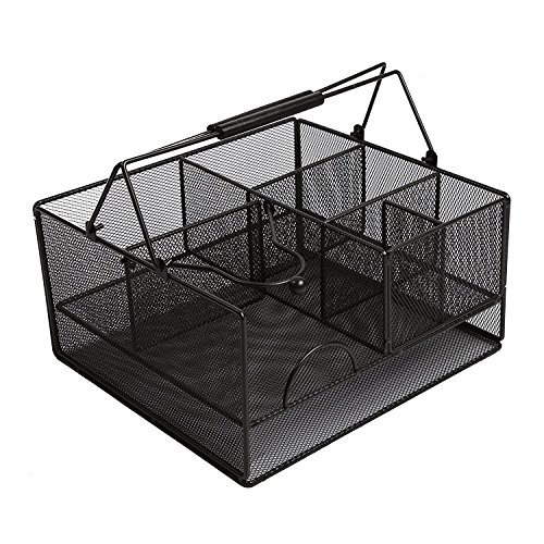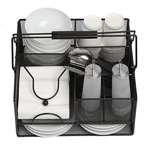 Finnhomy Steel mesh Picnic Caddy, Metal Tabletop Organizer for Silverwares, Napkins, Condiments, plates, cups and more, for Camper, Barbecue party, Entertaining , Black