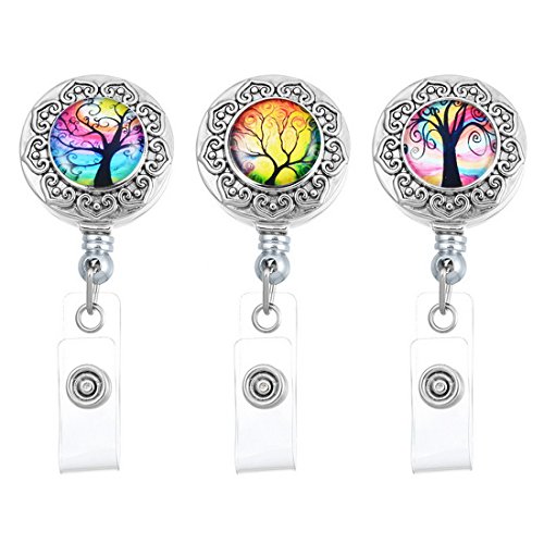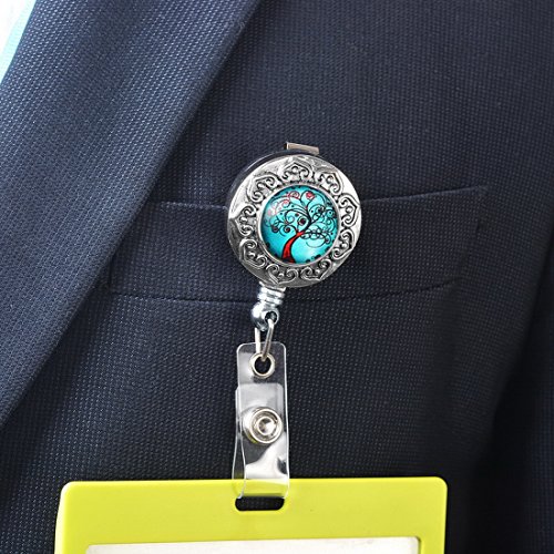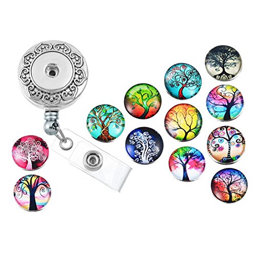 Souarts Retractable Badge Reel Clip On Card Holder with 12pcs Life Tree DIY Snaps Buttons Charms
