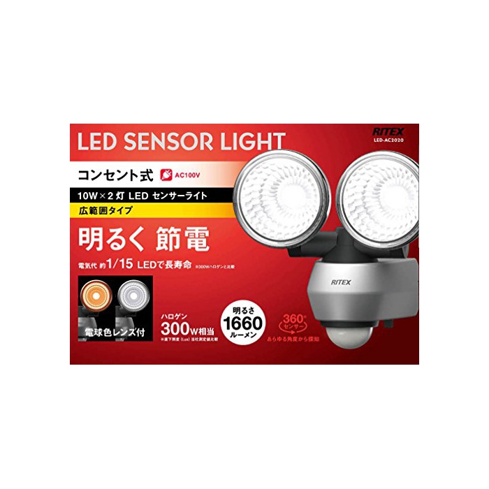 원본상품명: ムサシ RITEX 10W×2 LEDセンサライト(2式) 「コンセント式」 LED-AC2020