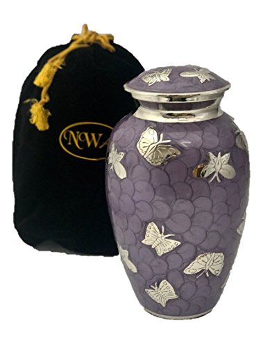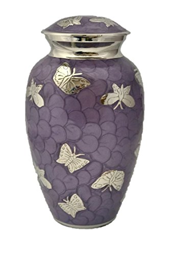 - Solid Brass adult size butterfly funeral cremation urn in Lavender and nickel finish