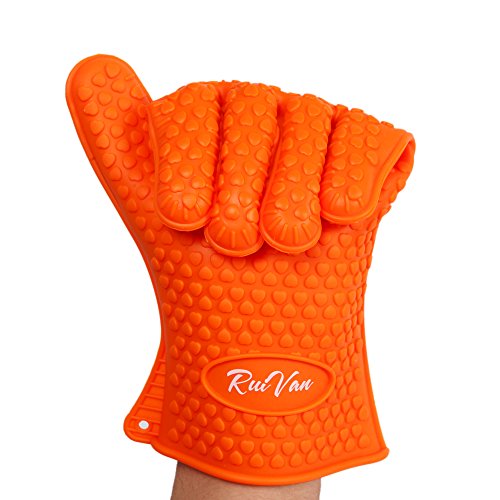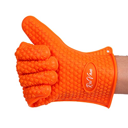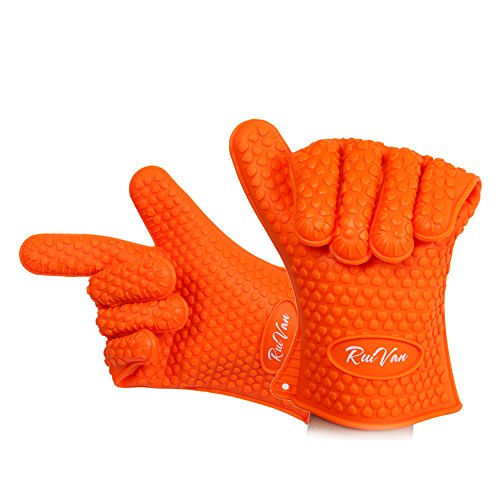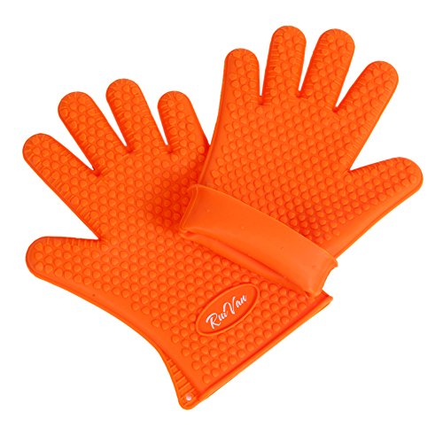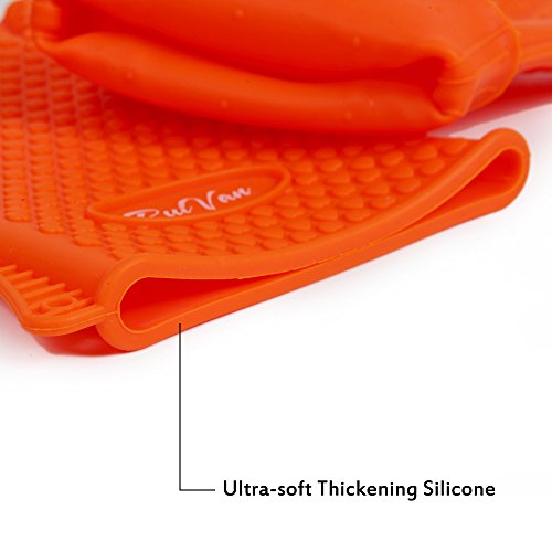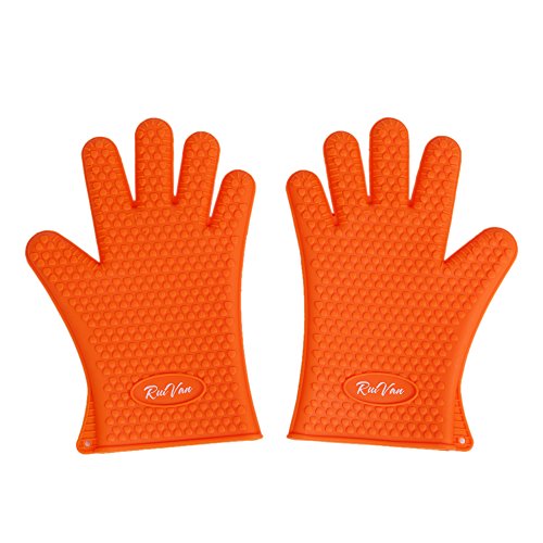 RUIVAN Heat Resistant Silicone Gloves,Set of 2 Heat Resistant Extra Thick Silicone Oven Gloves , Waterproof Non-slip Food Grade, for BBQ and Cooking Grilling Baking (ORANGE)