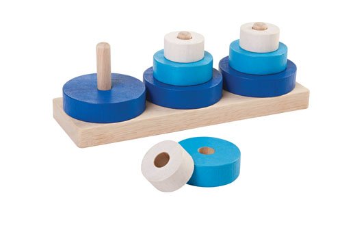 Trio-Stacking will engage children into the enjoyment of stack rings in different ways to create various patterns. They will also learn ordering, grouping colors and size relationship.