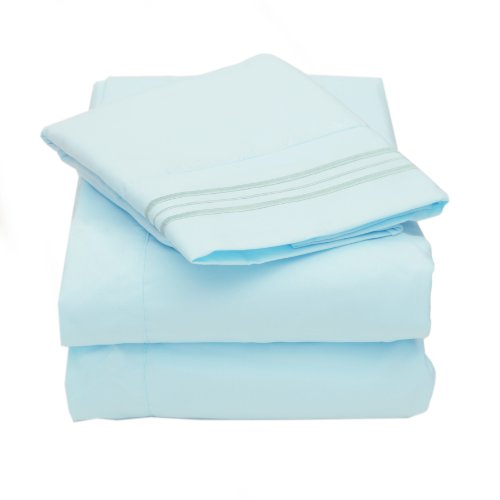 Sweet Home Collection 2000 All Size 12 Colors Collection 4-Piece Egyptian Quality Deep Pocket Bed Sheet Set, California King, Light Blue