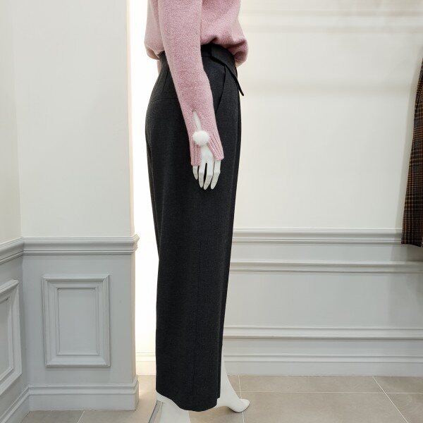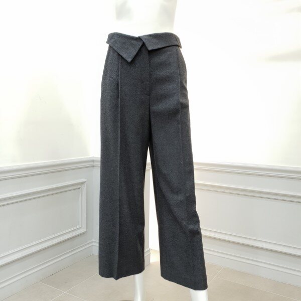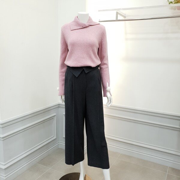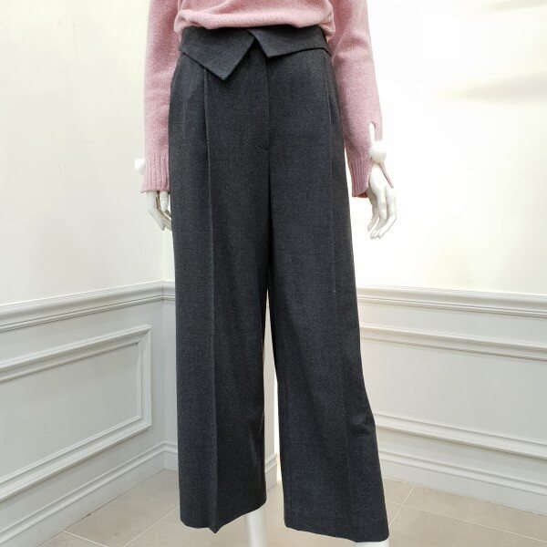 젖혀지는 허리밴드가 포인트인일자핏 와이드팬츠입니다~~♡♡착용시 트렌디해보이며 .슬림~~슬림니트탑과 매칭~통단면 27cm