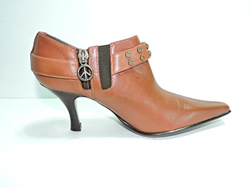 Mars Tan leather with rubber and leather engraved soles. Closed toe.