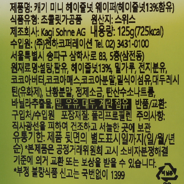 2. 캐기 미니 헤이즐넛 웨이퍼 125g