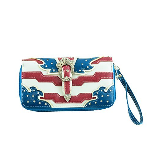 Western Wallet Stars and Stripes American Flag Wallet accented with a Silver Buckle and Studs