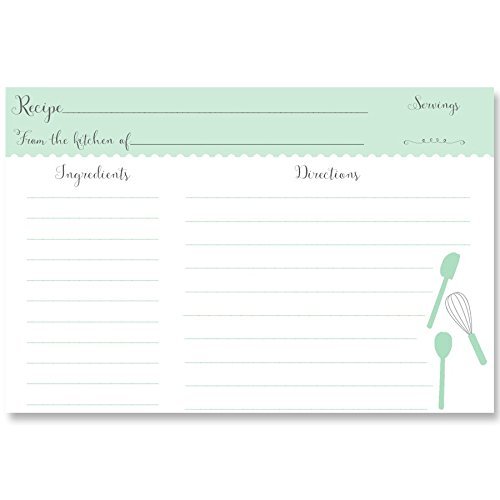 Recipe Cards,Mint, Green, Bridal Shower, Housewarming, Wedding, Housewarming, Gift, Stock the Kitchen, Vintage, Retro, Size 4 x 6, Double Sided with Lines, Set of 24 Printed Cards, Basic Recipe