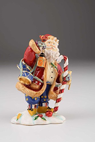 Santa Claus Cristmas Faberge Styled Trinket Box Handmade Decorated with Swarovski Crystals