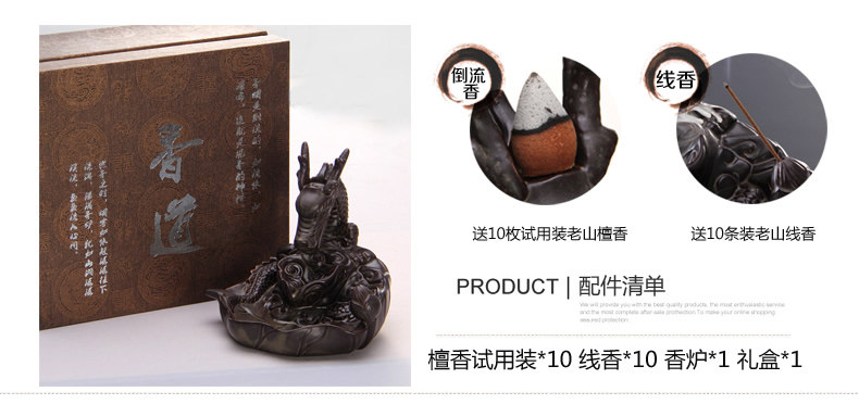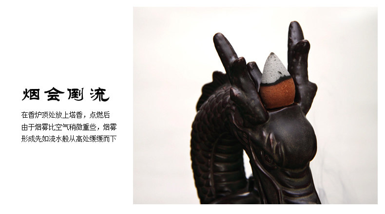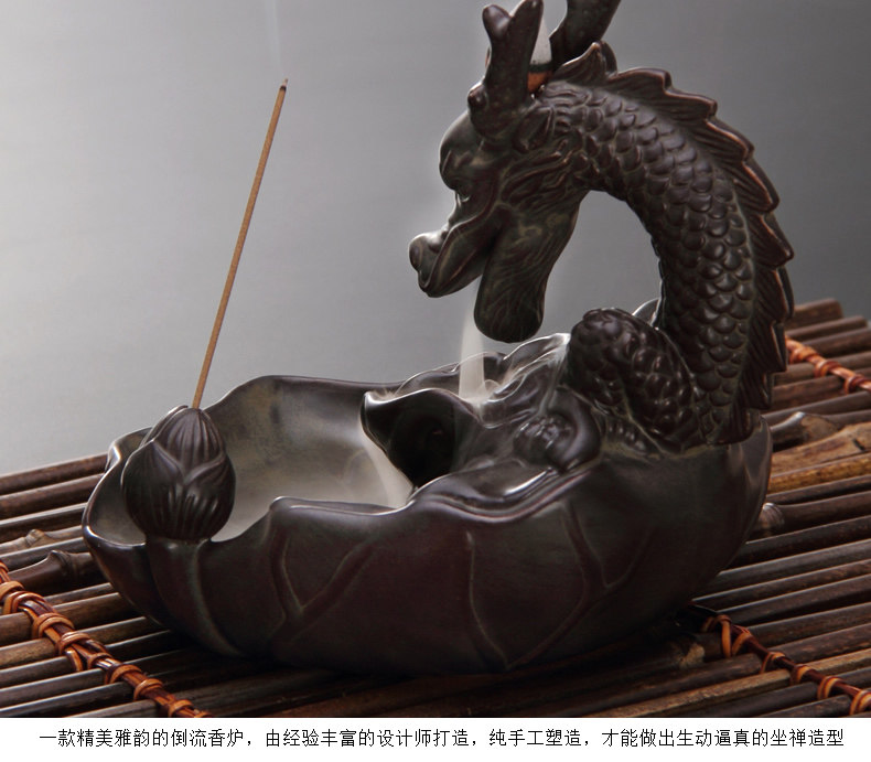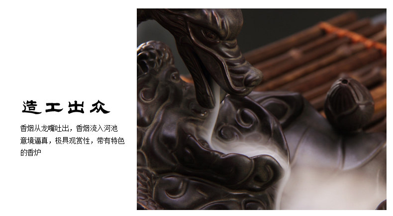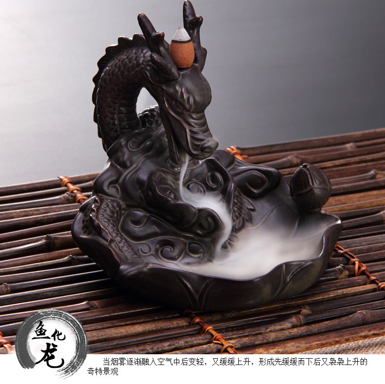 鱼化龙倒流香炉 创意茶道配件陶瓷檀香摆件 线香香塔香大号香薰炉