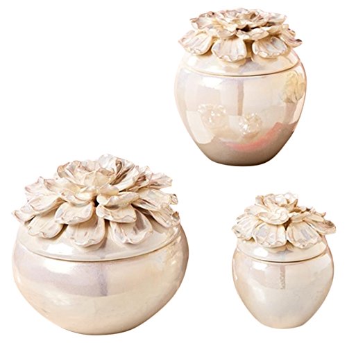Two's Company 51592 Set of 3 Iridescent Flower Lidded Jars