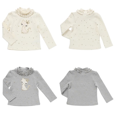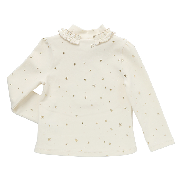 상품설명 아이보리, 그레이컬러의  골드별 반목 폴라티셔츠입니다. 슬림핏에 프릴장식과 화려한 별나염으로 포인트를 주었습니다.