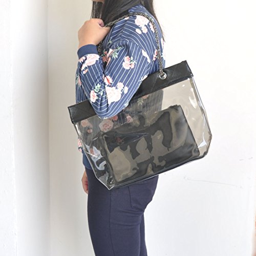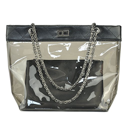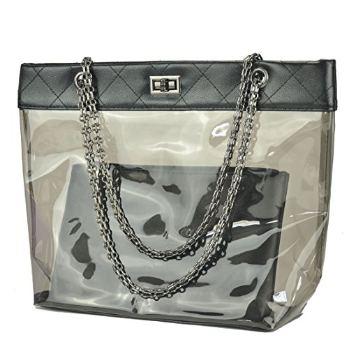 Women Clear Shoulder Purse Transparent Beach Handbag with Chain Volganik Rock NFL Stadium Approved Tote Bag