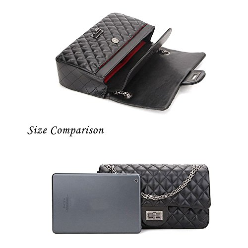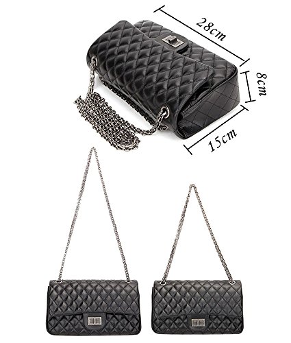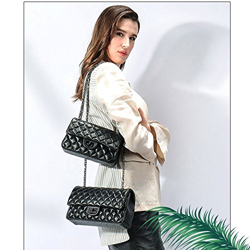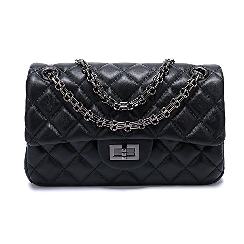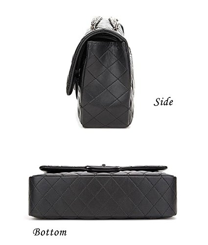 Sheli Branded Classic Medium Black Quilted Soft Lampskin Leather Shoulder Crossbody Handbag for Woman