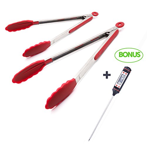 - EXCLUSIVED 2017 KITCHEN TONGS COLLECTION: Buy our 9” & 12” BBQ tongs set, now we offer one BBQ thermometer as free BONUS in limited time