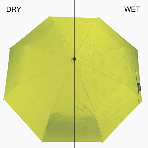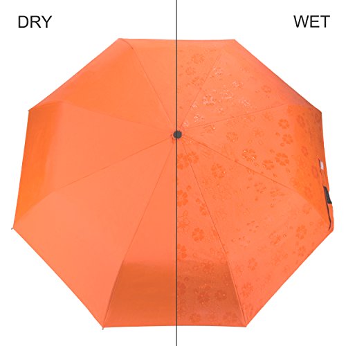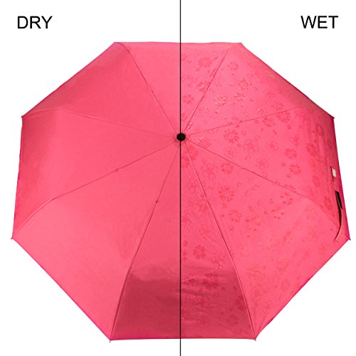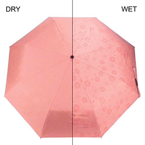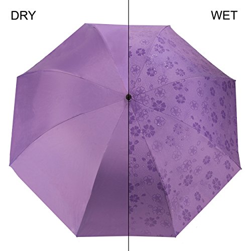 Aerusi Automatic Magic Flowers Sun Rain Blocking Parasol Umbrella Will display the flower on the umbrella make your umbrella looks cool once it is dripping rain or water. High quality Anti-UV black rubber canopy, heat-insulating coating, UV treatment blocks harmful sun rays. Printed with numerous flowers on the canopy, color changing design made this umbrella cheer you up in any bad weather. Great essential partner when you are going out.