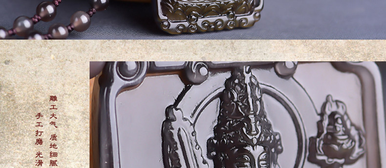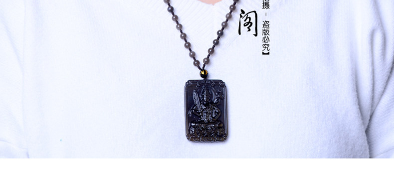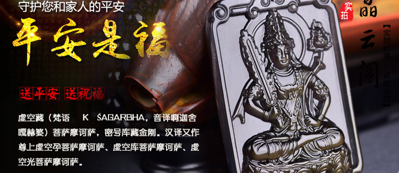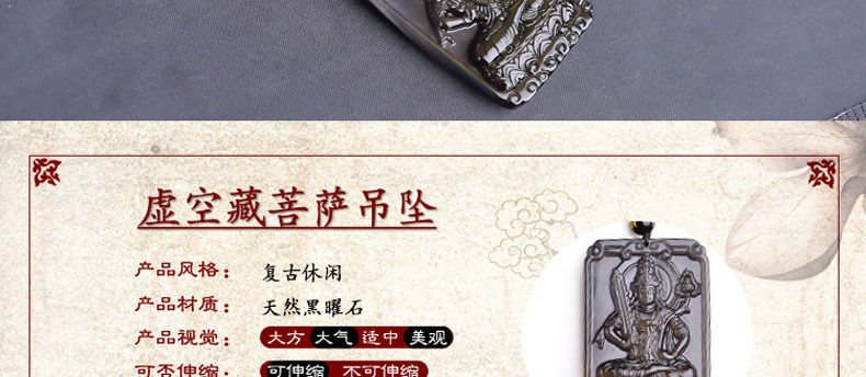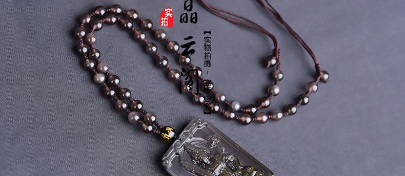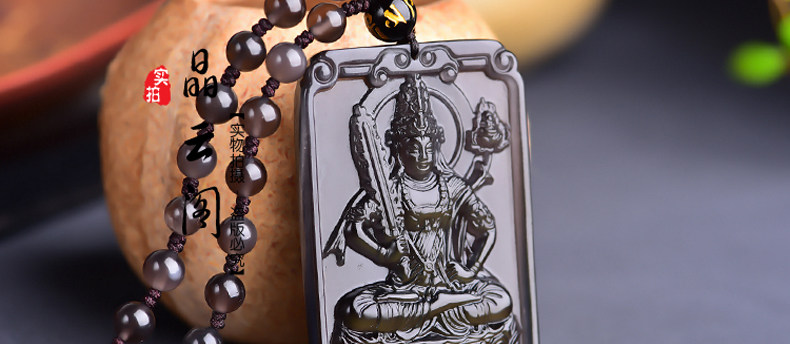 开光天然彩虹眼黑曜石虚空藏菩萨 生肖牛虎守护神本命佛吊坠项链