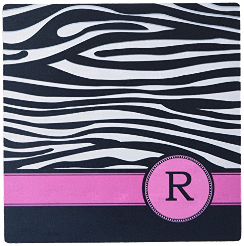 3dRose LLC 8 x 8 x 0.25 Inches Mouse Pad, Letter R Monogrammed Black And White Zebra Stripes Animal Print with Hot Pink Personalized Initial (mp_154289_1)