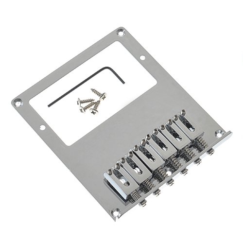 Kmise A1598 1 Pack Square 6 Saddle Bridge Chrome for Tele Humbucker Replacement
