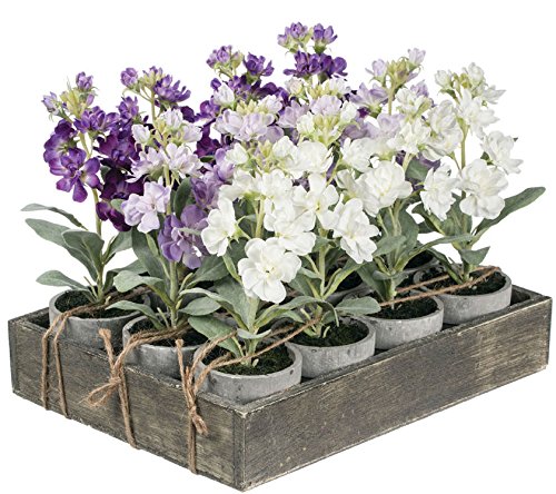 Sullivan's Wood Tray with 12 Ceramic Filled Flower Pots (Delphiniums)