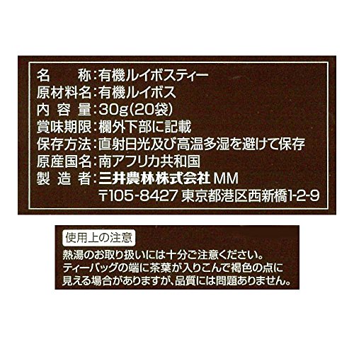 -. Feature : Contents: 30g (20 bags) / Ingredients: organic rooibos / Product size (height x depth x width): 125mmx78mm
