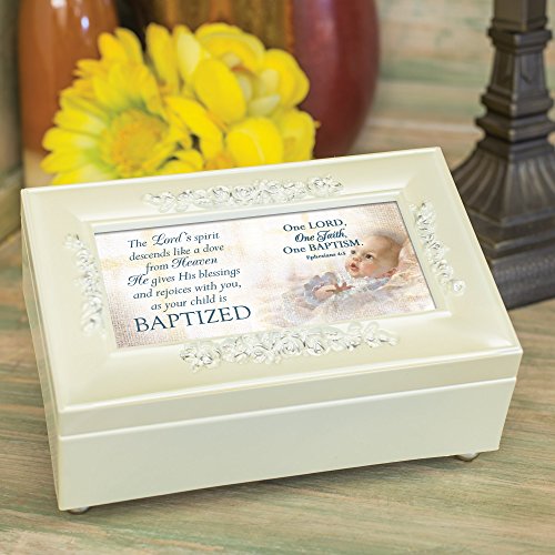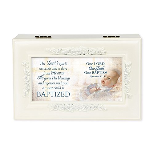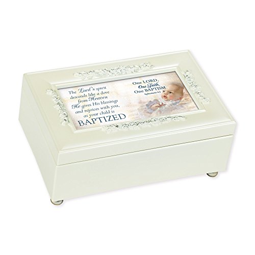 One Lord Faith Baptism Cream Pearlescent Jewelry Music Box Plays Tune- Jesus Loves Me