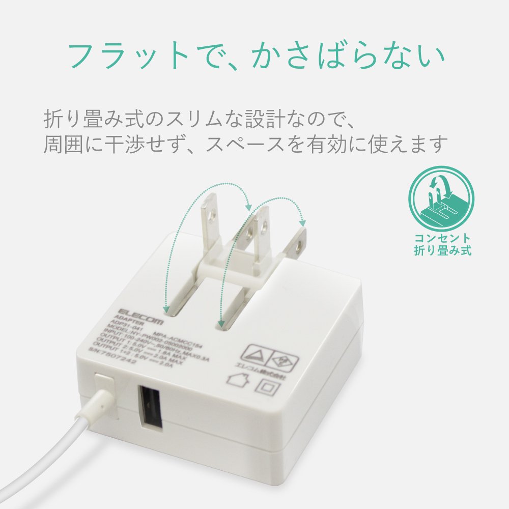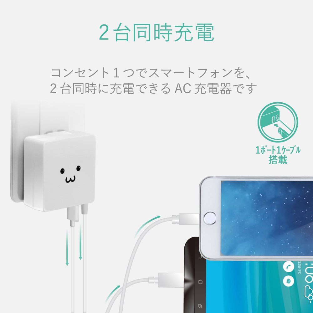 ■ It is an AC charger that can charge two smartphones at the same time by installing one USB port and connecting a corresponding charging cable in addition to an integrated cable that can be connected to a smartphone or tablet equipped with a micro-B connector.
