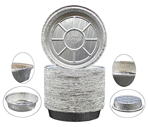 9 Inch Round Tin Foil Pans - Freezer & Oven Safe Disposable Aluminum - For Baking, Cooking, Storage & Reheating - Pack of 50 - By MontoPack