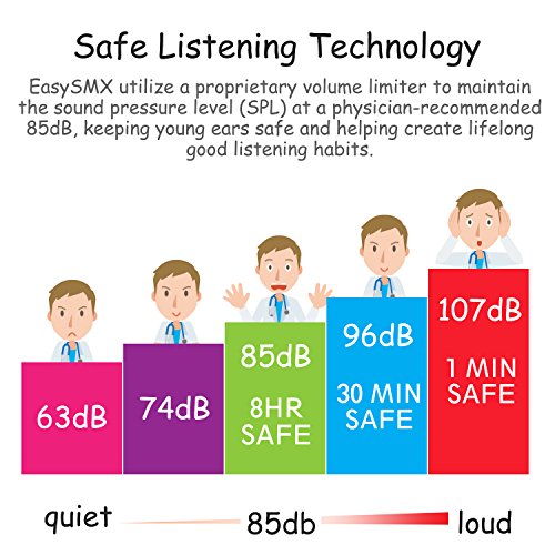 Product Features EasySMX Safe Kids Headphones are designed for children ages 3 and up, 85dB volume limited with headphone splitter for sharing. Foldable, lightweight and comfortable design makes it a must for car rides, plane trips, hanging out or at home.
