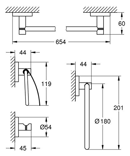 - Includes Towel Ring (40 365 001); Robe Hook (40 364 001); 24” Towel Rail (40 366 001); Toilet Paper Holder with Cover (40 367 001)