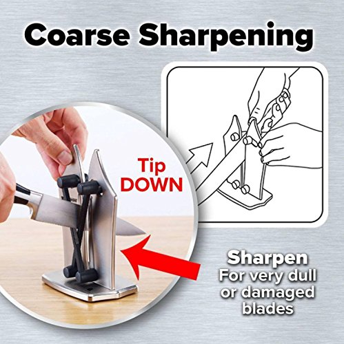 FEATURES: Our knife sharpener is easy to operate, simple and safe - Sharpen knives like a pro in the comfort of your home. Sharpen dull and damaged blades in seconds. Hone a razor sharp edge on even the finest knife blades