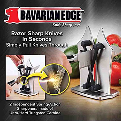 Product description This knife sharpener will keep any straight edge steel knivesconstantly sharp. Your kitchen shouldn't be without knife sharpener.Bavarian Edge kitchen knife sharpener sharpens ALL your dull knives in seconds, unlike an electric knife sharpener or sharpening steel that only sharpens a couple different types of blades.