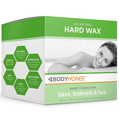 Studio : BodyHonee Publisher : BodyHonee Binding : Misc. Product Description Hard Wax for Face, Underarms Bikini: BodyHonee's All-Natural Hard Wax is designed for removal of short coarse hairs, specifically on the bikini area, underarm, and face. Our Hard Wax contains plant-based Chlorophyll, a natural anti-inflammatory that will instantly soothe and calm the skin. Our strip-free formula does not require a fabric strip for the waxing process, because the wax firms up as it cools and becomes the strip itself. For this reason, it is particularly well suited for short, coarse hair as it literally 'shrink-wraps' around each strand, grabbing hold of the most stubborn hairs to lift them out from the root, leaving you silky smooth for up to 8 weeks!