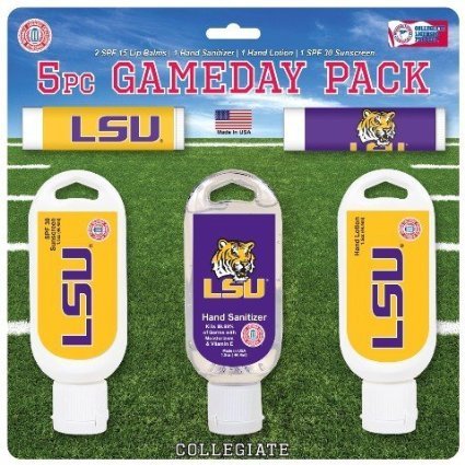 -. Title : NCAA LSU Tigers Game Day Pack Includes 2 Lip Balm, 1 Hand Lotion, 1 Hand Sanitizer and 1 SPF 30 Sunscreen (5-Piece), 8 x 8 x 1.5-Inch, White