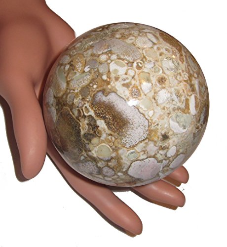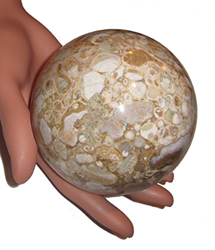 Your new sphere is made from unique snake skin jasper! This large and mesmerizing sphere has lush spotted patterns of brown, soft blue, and white. True from the earth, it has been polished yet maintains natural lines and grooves along the surface. Bring the energy of the cunning and powerful King Cobra into your life. Receive this exact stone pictured when you order from Satin Crystals!