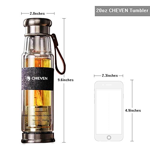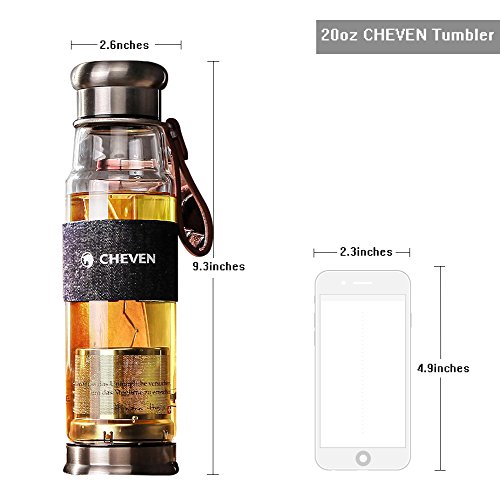 CHEVEN Tea Infuser Tumbler & Fruit Infuser Glass Water Bottle 20oz with Tea Strainer /Tea Cup with Stainless Steel Steeper/Portable Teapot, Travel Mug with Travel Insulated Thermo Sleeve (Courage)