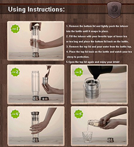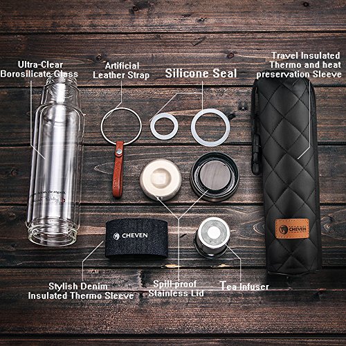 CHEVEN Tea Infuser Tumbler & Fruit Infuser Double Glass Water Bottle 13oz with Tea Strainer /Tea Cup with Stainless Steel Steeper/Portable Teapot, Travel Mug with Insulated Thermo Sleeve (Optimism) ...